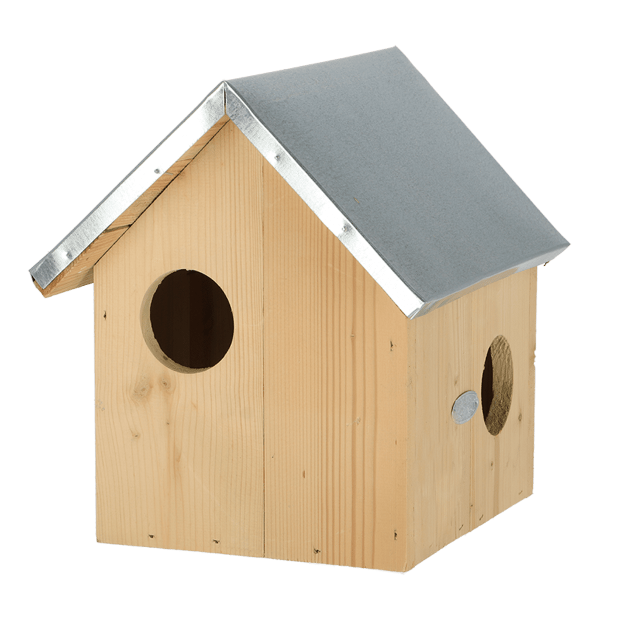 - Het huisje heeft verschillende uitgangen, wat bijdraagt aan de veiligheid van de eekhoorn. Hang één doorgang in de buurt van een stevige boomtak om snel te kunnen ontsnappen bij gevaar.
