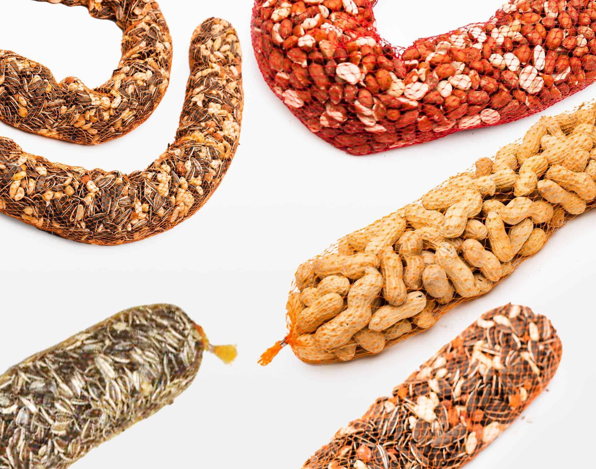 Hang de slingers buiten met dit grote vogelvoer slingerpakket van vogelvoerkopen.nl
