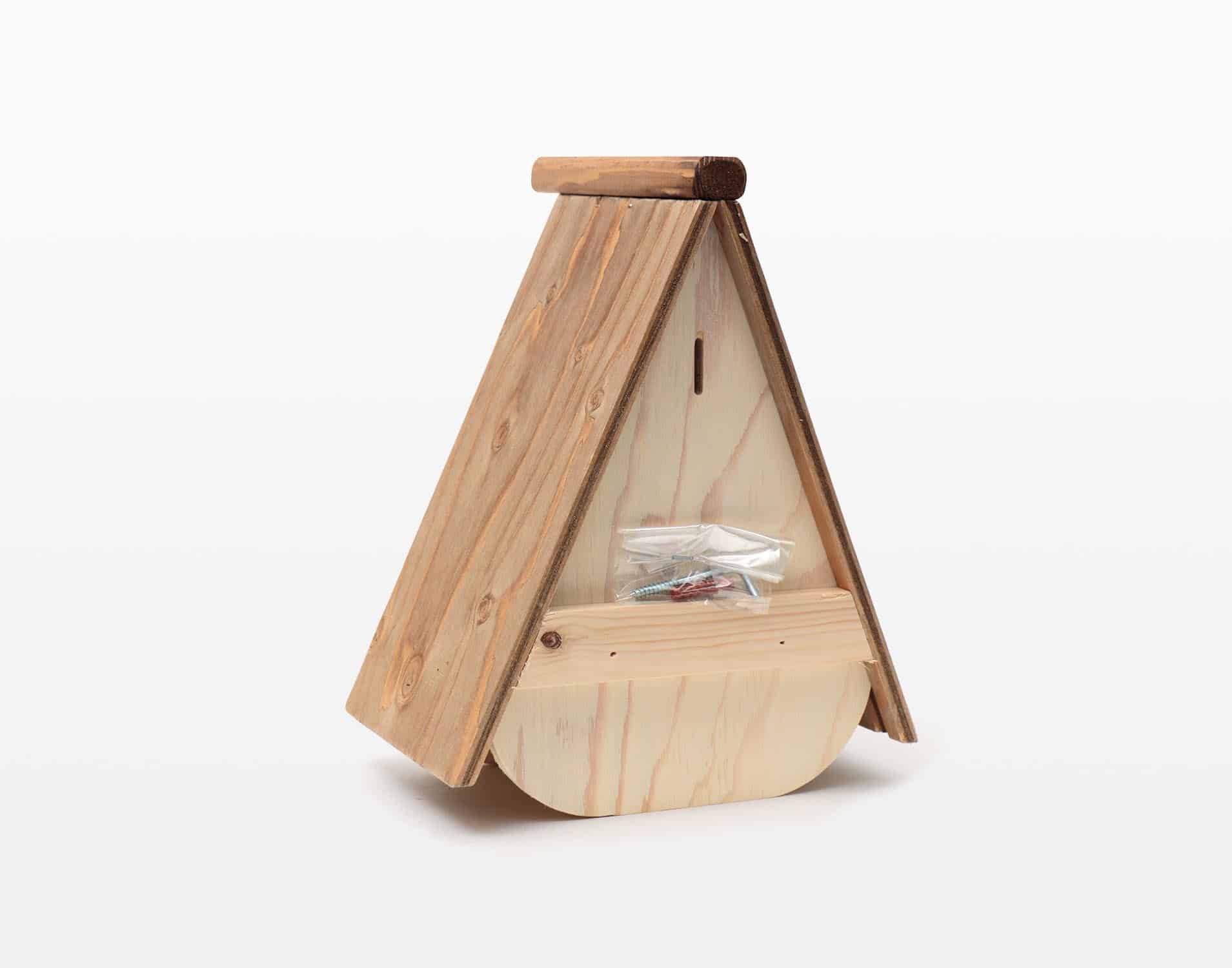 Dit ontwerp heeft een karakteristiek invlieggat met een doorsnee van 3,2 centimeter. Ideaal voor koolmezen en pimpelmezen.