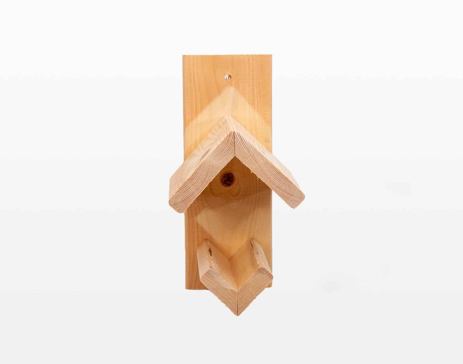 De pindakaaspothouder is gemaakt van vurenhout en voorzien van boorgat zodat deze eenvoudig op te hangen is aan een boom, schutting, muur of balkon. De pindakaaspothouder heeft een standaard formaat en daarmee geschikt voor de meeste pindakaaspotten, bavaroise en vogelmousse. De werking is zeer eenvoudig, draai de dop van de pindakaaspot en schuif de pot eenvoudig in onze houder. Een dakje beschermt het tegen weersinvloeden en aan de onderkant van de houder hebben de vogels voldoende steun en bescherming om rustig te eten.