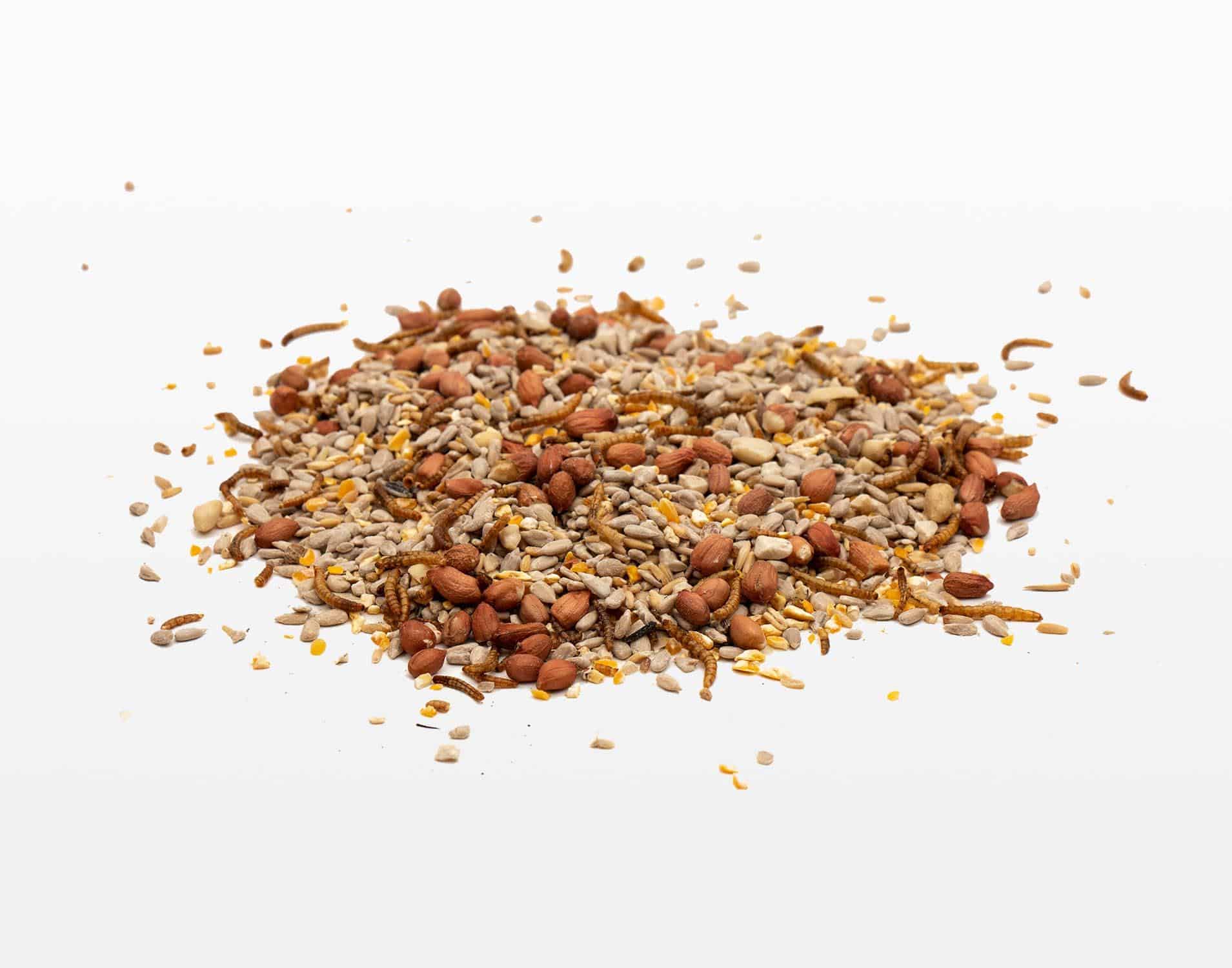 De meeste vogels zullen door de reeds gepelde zaden en premium gedroogde meelwormen direct op de voederplek gaan eten en hoeven de zaden niet mee te nemen naar een rustig plekje om ze te pellen. Dit premium strooivoer kan gebruikt worden als strooivoer maar is bij uitstek geschikt voor een voederhuisje of silo. Daarnaast trek je er ook andere insecteneters er mee aan, bijvoorbeeld egels eten graag van deze lekkernij!