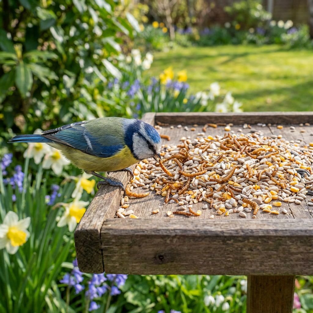 Vogels zijn er blij mee, fijn dat die meelwormen erin zitten.