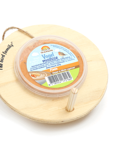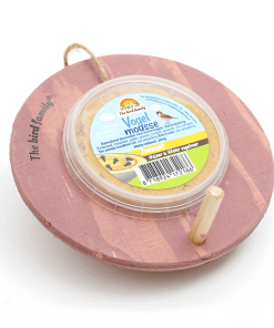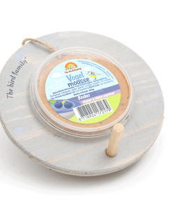 De potjes vogelmousse zijn gemaakt om te plaatsen in de voederring van hout. Deze voederring met vogelmousse is eenvoudig op te hangen aan een tak, tuinafscheiding of balkon. Door het slingeren en ronddraaien van de voederring krijgen kleine tuinvogels het meeste kans om zich te goed te doen aan deze lekkernij. De vogelmousse is 100% geschikt voor alle vogels en is daarnaast ook zeer geschikt voor jonge vogels. De vogelmousse is rijk aan eiwitten, koolhydraten, proteïnen, vitamines, oliën en vetten.